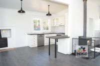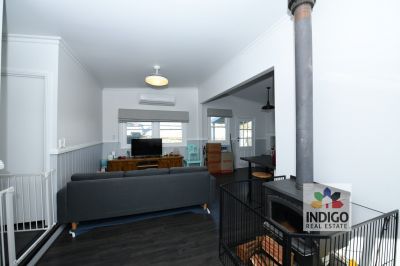 The open-plan living area includes a kitchen with ample storage and meal preparation areas, dishwasher, gas cooktop and electric oven, double sink, wood combustion stove and access to the outside yard. Adjacent, the spacious, light-filled lounge / dining area features a free-standing wood heater, reverse-cycle air-conditioning, ceiling fan and access to both the side yard and a separate laundry / second bathroom. There is an additional sitting area located at the front of the house.