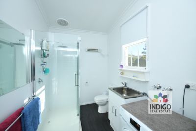 The main bathroom includes a bath, vanity and toilet. The separate laundry / second bathroom features a shower, toilet, sink and storage. Gas Hot Water is installed.