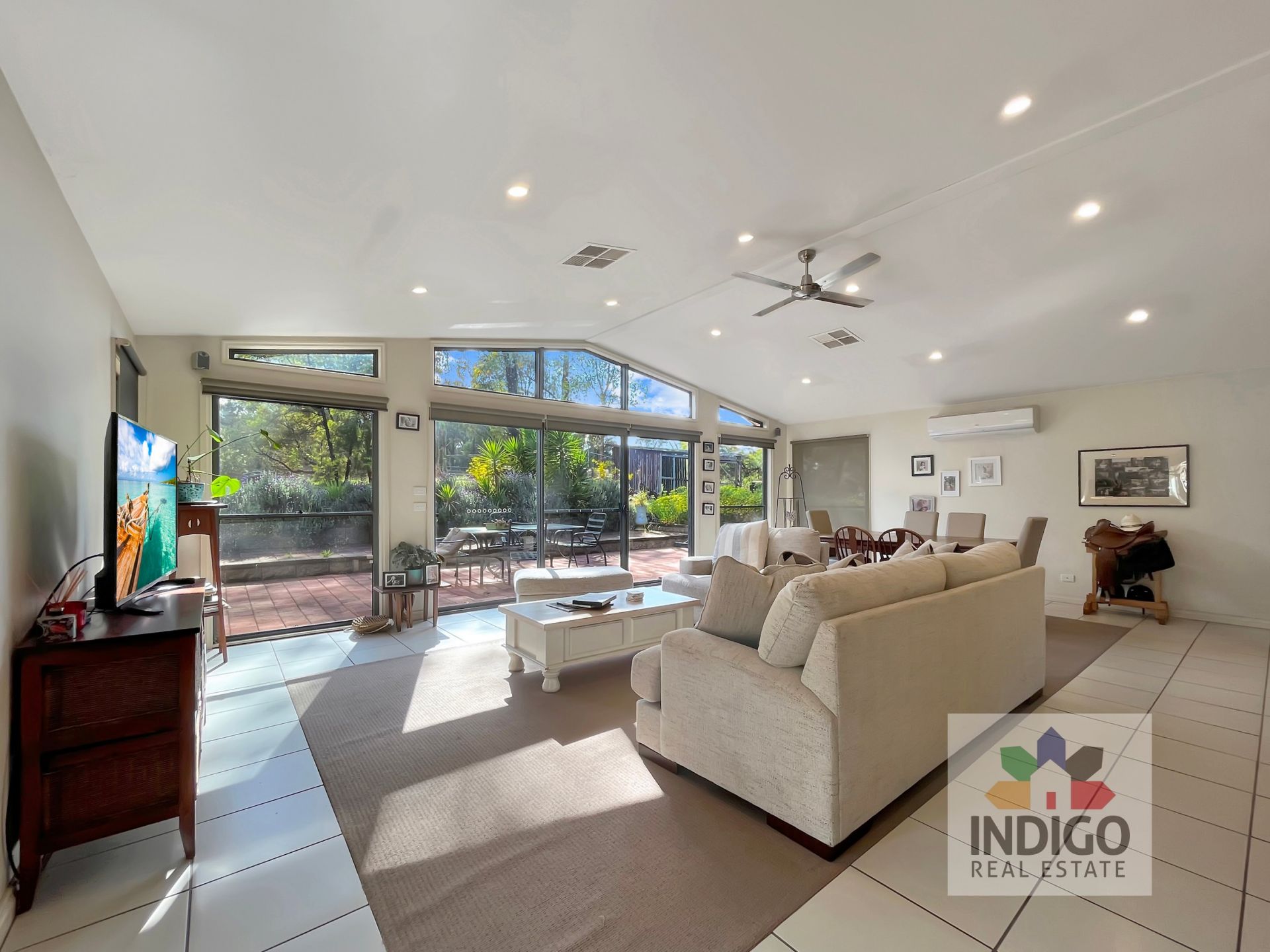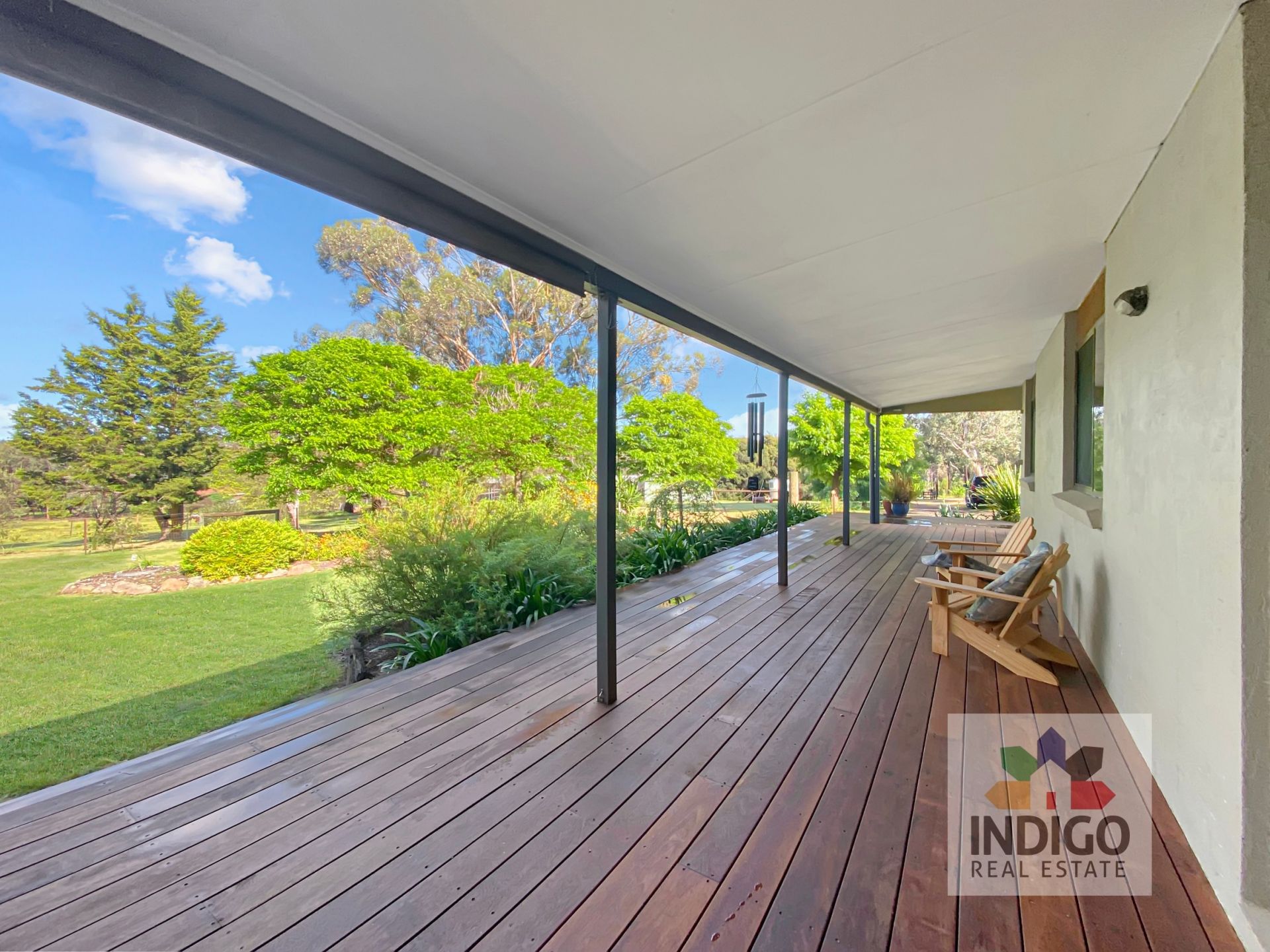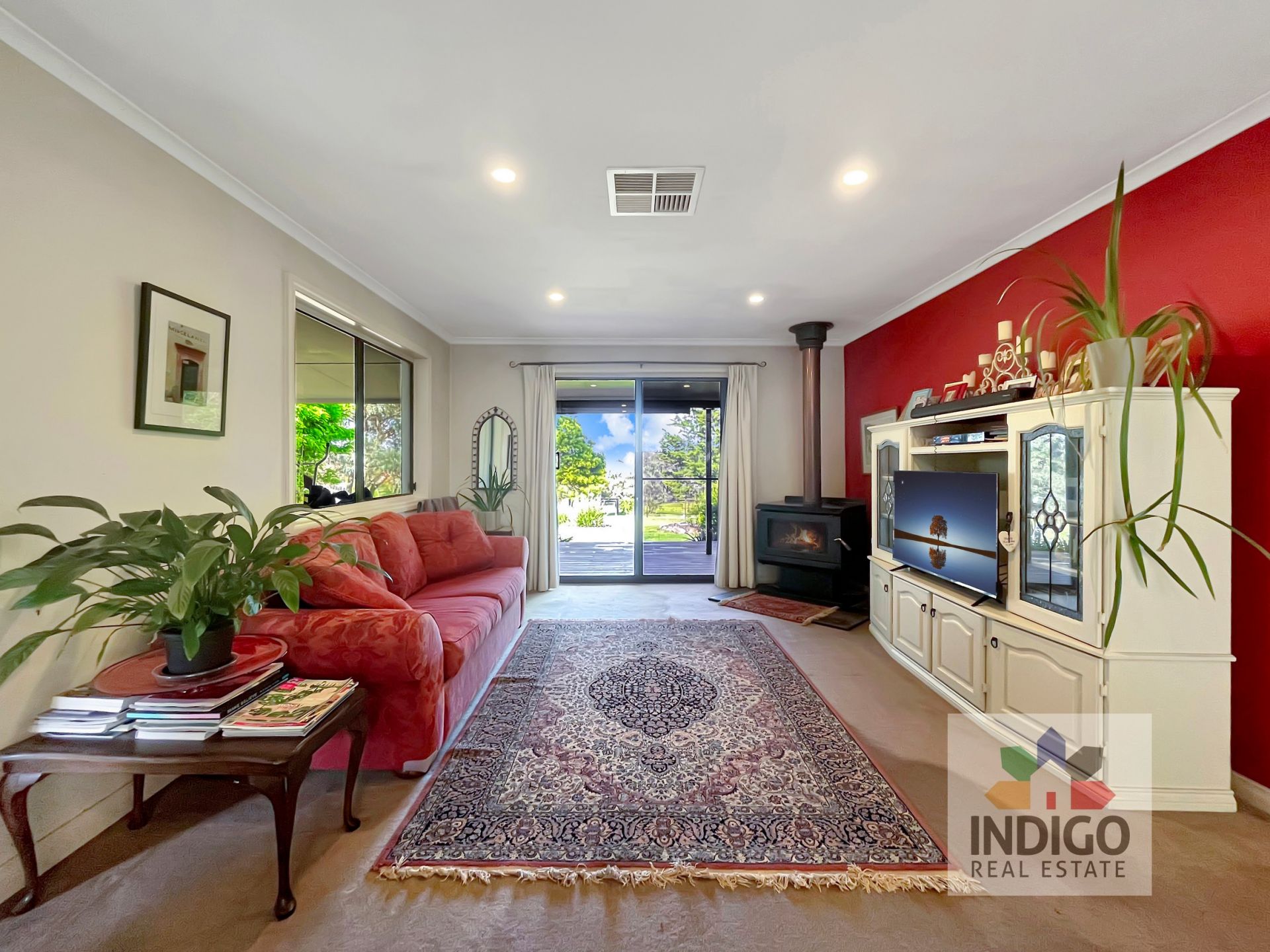 There is a second informal sitting / TV area with a wood combustion heater and sliding doors to the front, extra-wide undercover verandah, and entertainment area with expansive views across the front gardens and adjacent acreage properties.