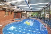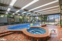 The heated pool is fully enclosed for year-round use and has a separate spa.