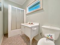 The original bathroom includes a shower, bath, and basin, and there is a separate laundry and toilet with access to the rear undercover verandah.
