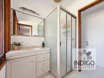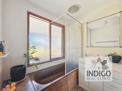 A well-appointed main bathroom includes a combined shower/bath, vanity, and toilet, with convenient access to the laundry-featuring direct entry to the southern side of the property and rear paddocks.